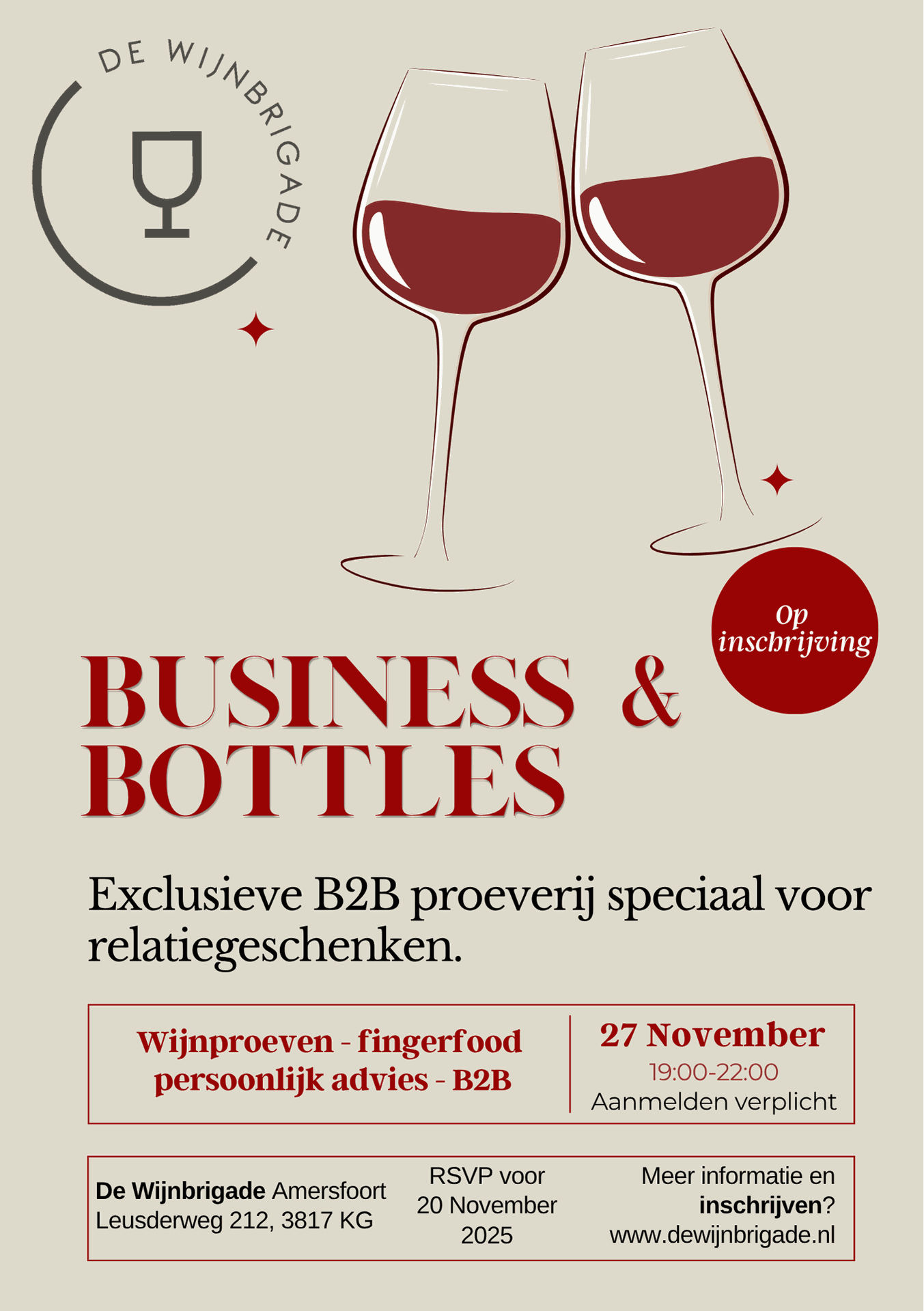 Daarom organiseert de Wijnbrigade Business & Bottles: een gezellige avond vol lekkere hapjes, mooie open wijnen en volop inspiratie voor unieke eindejaarsgeschenken.
